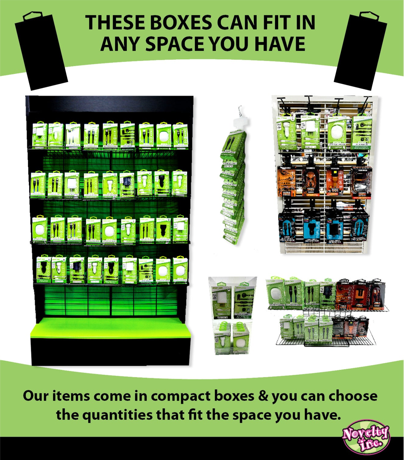 Specially curated for our Technology Peg Program. Product sets like the one below feature compact 3" x 6" box designs — creating versatility to choose quantities that will best fit your space.