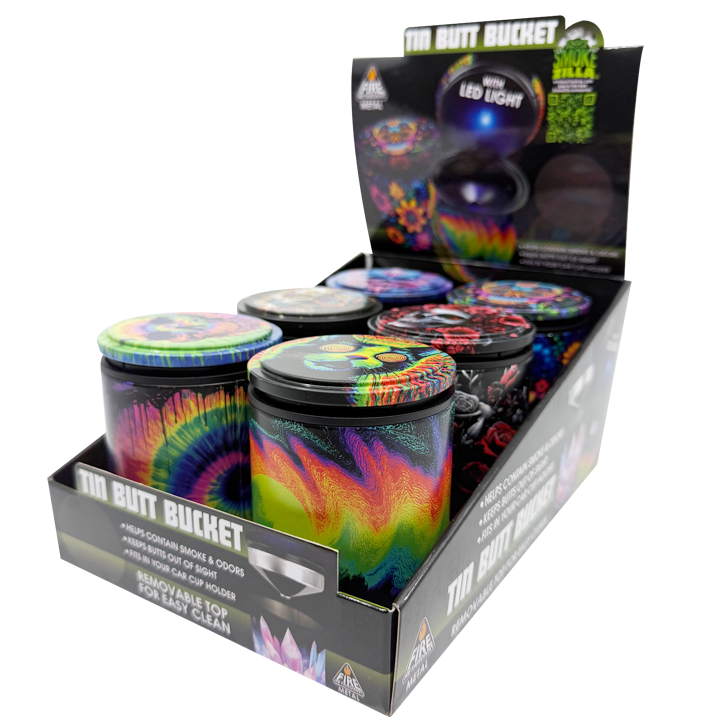 Full Print Butt Bucket Ashtray with LED Light - 6 Pieces Per Retail Ready Display 26430