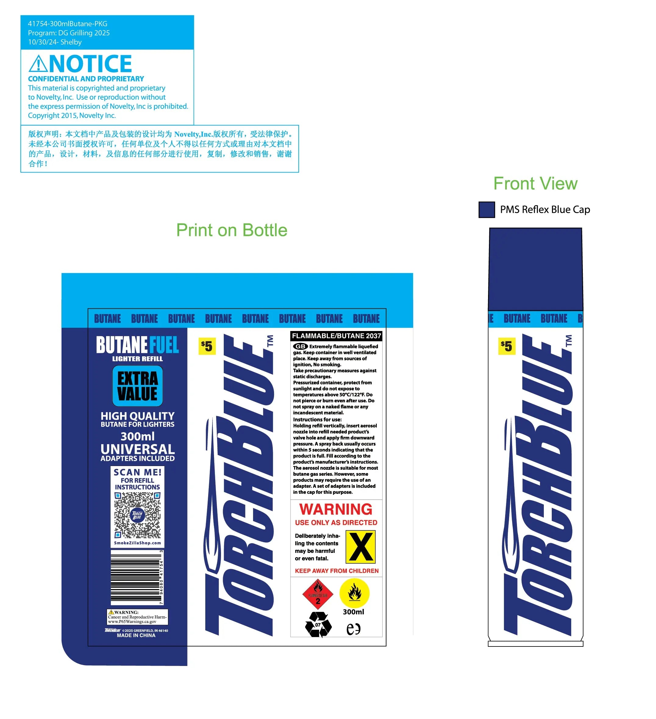 300ML Bulk Torch Blue Butane Refill - 6 Pieces Per Retail Ready Display 41754