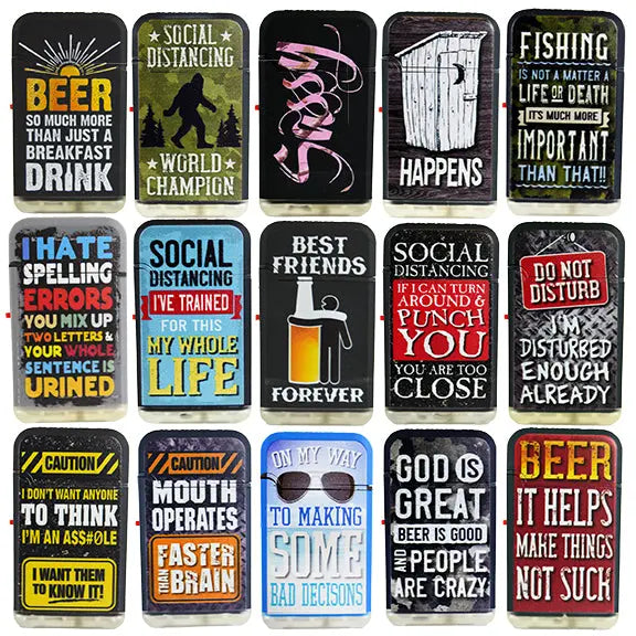 Big Bubba Dual Torch Lighters has adjustable 2300° flames, strong enough for any task! Great for camping, bronzing metal, soldering wires, flaming food, and more! Works at any angle, even upside down! Comes with a built-in safety lock. Features a soft touch finish. Comes in a variety of satirical expressions.