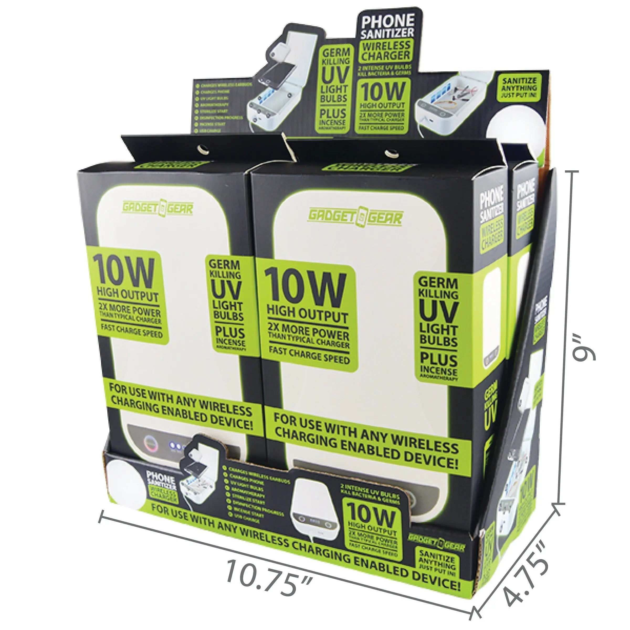 Cell Phone Sanitizer and Wireless Charger 10 Watts - 4 Pieces Per Retail Ready Display  21942 GADGET GEAR