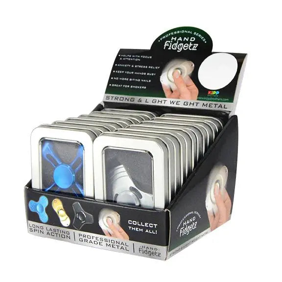 These lightweight and strong aluminumfidget spinners come in assorted shapes & colors. Each individual spinner comes in a metal gift box.
