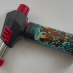 Printed Magnum Torch lighter has a 2300° flame, strong enough for any task! Great for camping, bronzing metal, soldering wires, flaming food, and more! Works at any angle, even upside down! Comes with a built-in safety lock. Large tank means plenty of fuel and an extra large flame makes any job easy. Refillable. Each display includes a variety of printed artwork styles.