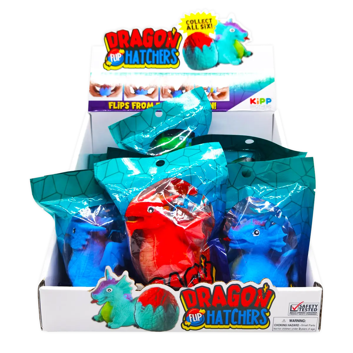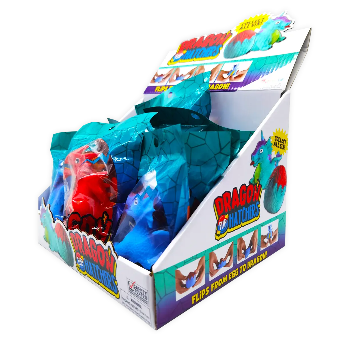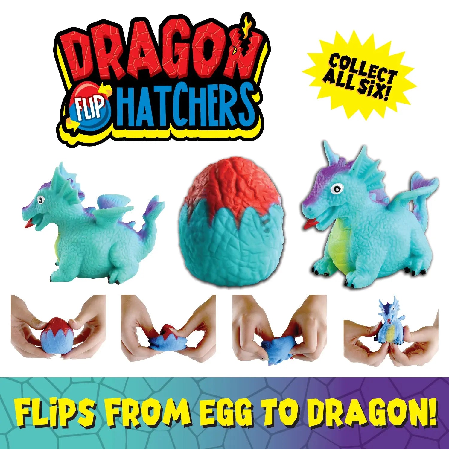 Hatch your very own dragon – collect all 6! Fun Dragon Hatchers flip between egg and dragon. Perfect sensory toy – great for developing depth perception and building fine motor skills. Various styles and colors included in each display. Ages 3+