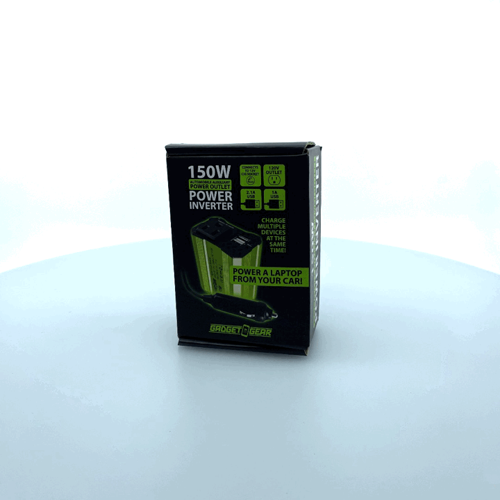 Power any device from your car! 150W Power Inverter connects to 12V cig socket and features 120V outlet, 2.1A USB and 1A USB ports. Charge anything on-the-go; we're talking laptops, game consoles, e-readers, DVD players, lights, tablets and more! Powers up multiple devices at the same time! Max 3.1A total output.