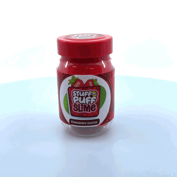 Fun containers of Stuff-n-Puff Scented Slime. Squeeze, play, pull! Scents included: bubblegum, chocolate, marshmallow and strawberry. 🍬🍫🍢🍓