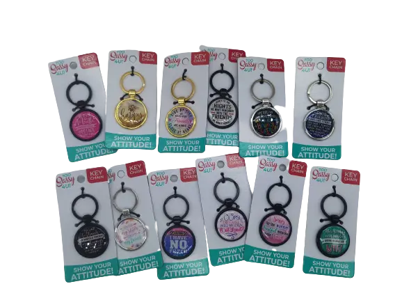 METAL KEY CHAIN IN ASSORTED DESIGNS. Comes in assorted designs and colors.