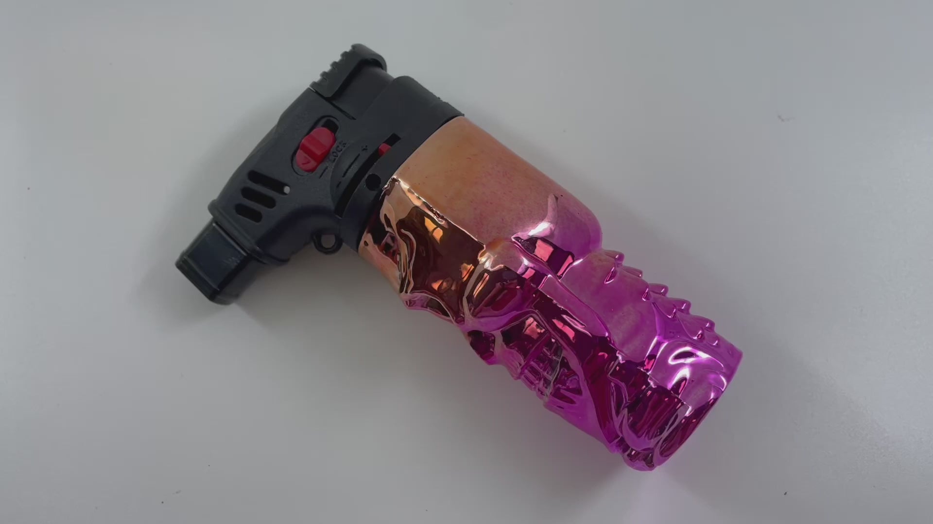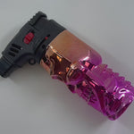 Refillable XXL style torch lighter with molded sugar skull designs. Has 2300° flame, strong enough for any task! Great for camping, bronzing metal, soldering wires, flaming food, and more! Features safety lock and assortedmetallic ombré color styles.