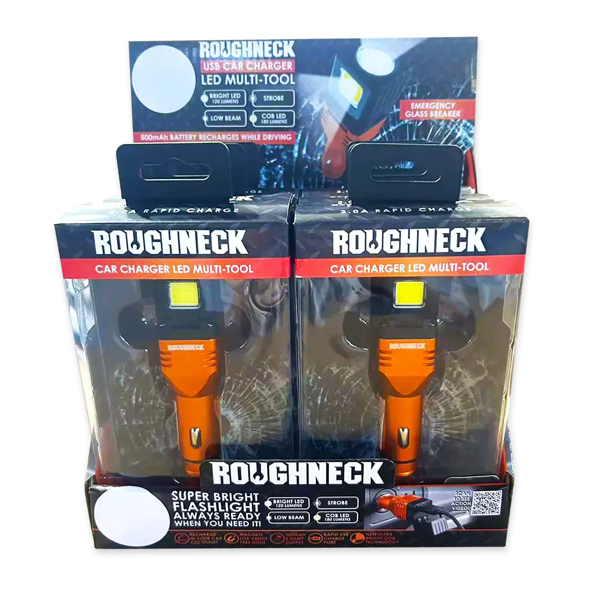 💡🧲🔌🔋💥 Rechargeable 500mAh battery – 2.0A output charges phones and other devices! Flashlight is always available when you need it. Use as a USB or Type-C car charger, COB light and glass breaker. Designed with magnets for hands-free use! Activating light options: