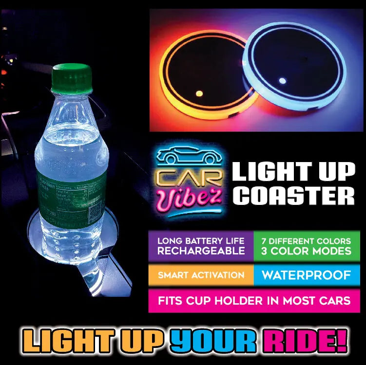 💦🥤🚗🧋✨ Light up your ride with these high-tech waterproof coasters! With vibration-sensing smart design, these light up coasters will cycle through 7 colors when dark or when sensing vibration, and turn off and on with a simple long press of the power button. Features 3 color modes. Includes a MICRO-USB cable for charging, so you can keep the good times rolling for up to 8 hours per full charge!