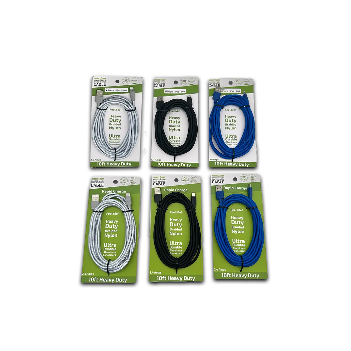 Charging Cable USB to Lightning 10FT 2.4 Amp - 6 Pieces Per Retail Ready Display 23827