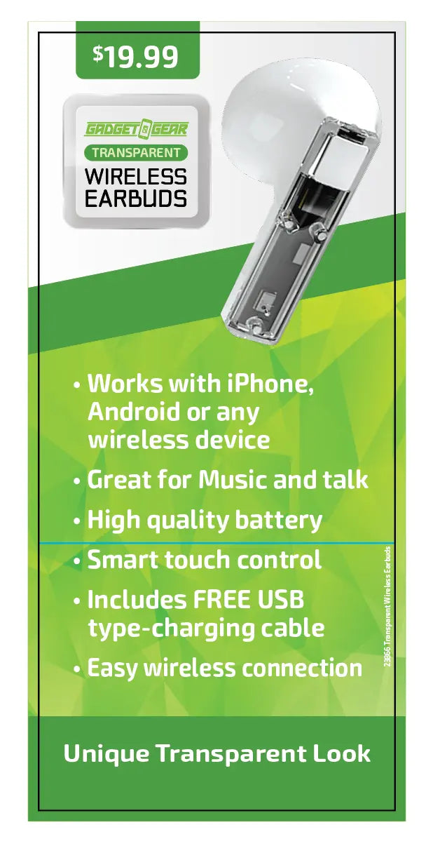 Wireless Earbuds with Transparent Case - 6 Pieces Per Retail Ready Display 23866