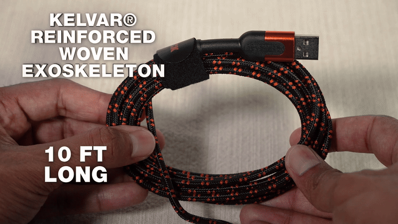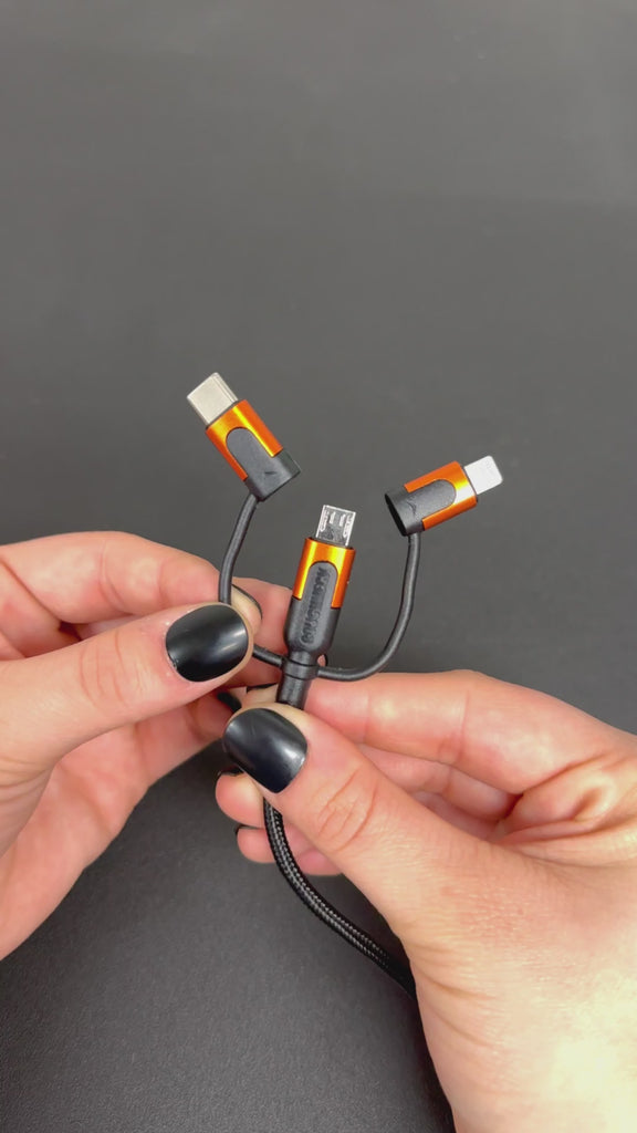 This 10FT 3 IN 1 CABLE provides convenient, multi-device charging with its 3 different cords: lightening, USB Type-C and micro-USB. Constructed with heavy-duty braided nylon and a protective aluminum casing, this ultra-durable cable is made with the same material used to make bullet proof vests. With a 10ft length, you'll never be too far from an outlet and will easily be able to reach the backseat. Experience rapid charge with a 2.4A SYNC & Charge!