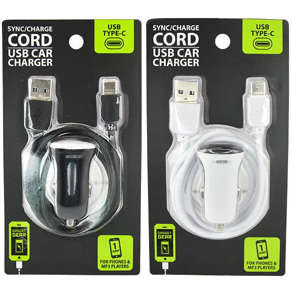 2 piece Type C charging set includes Type C charging cable and USB car charger.
