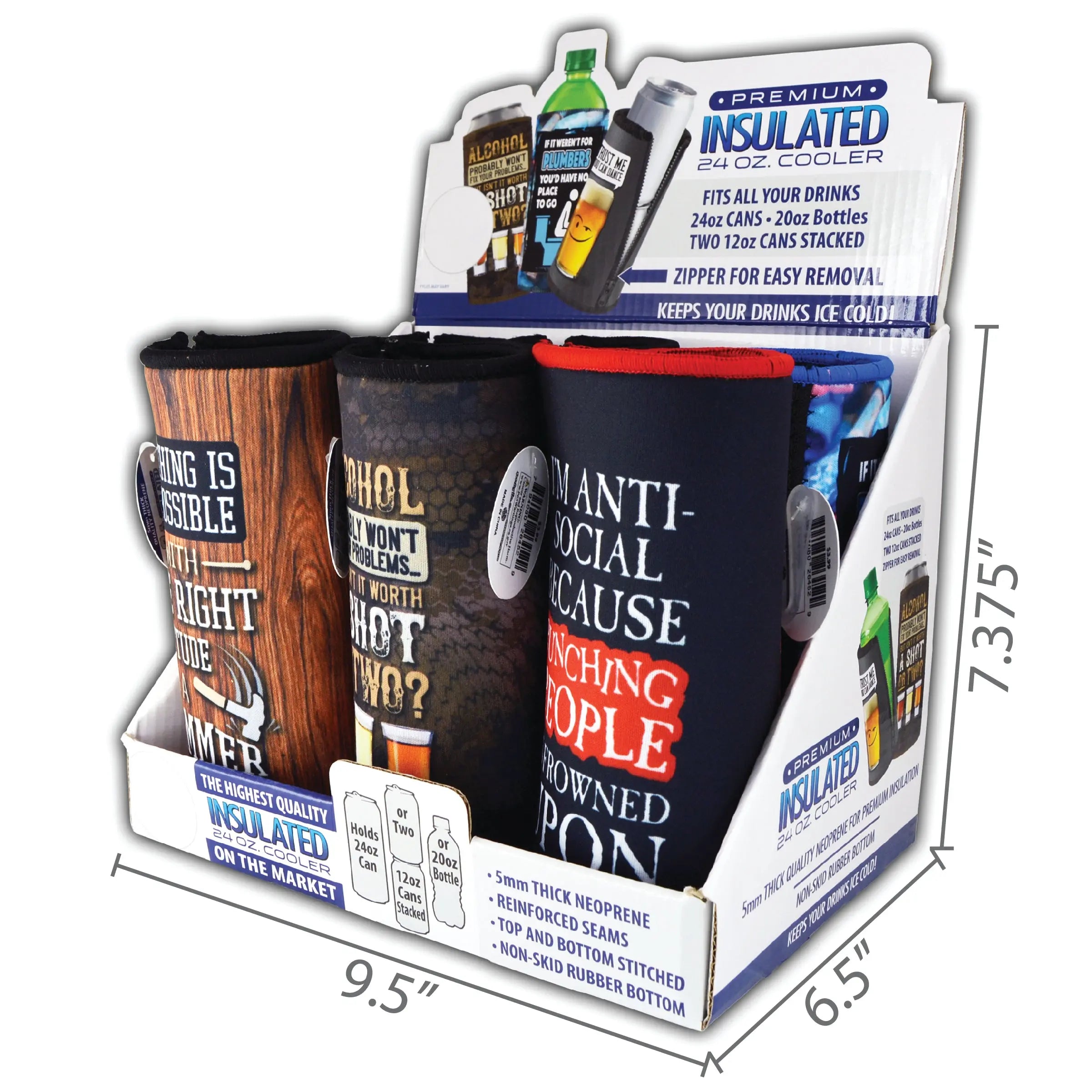 Neoprene 24 Oz Can and Bottle Cooler - 6 Pieces Per Retail Ready Display 26452