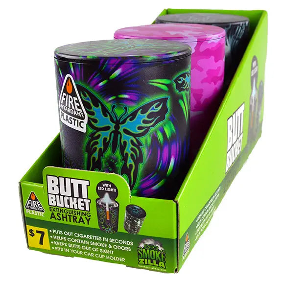 Full Print Butt Bucket Ashtray with LED Light - 3 Per Retail Ready Display 41392