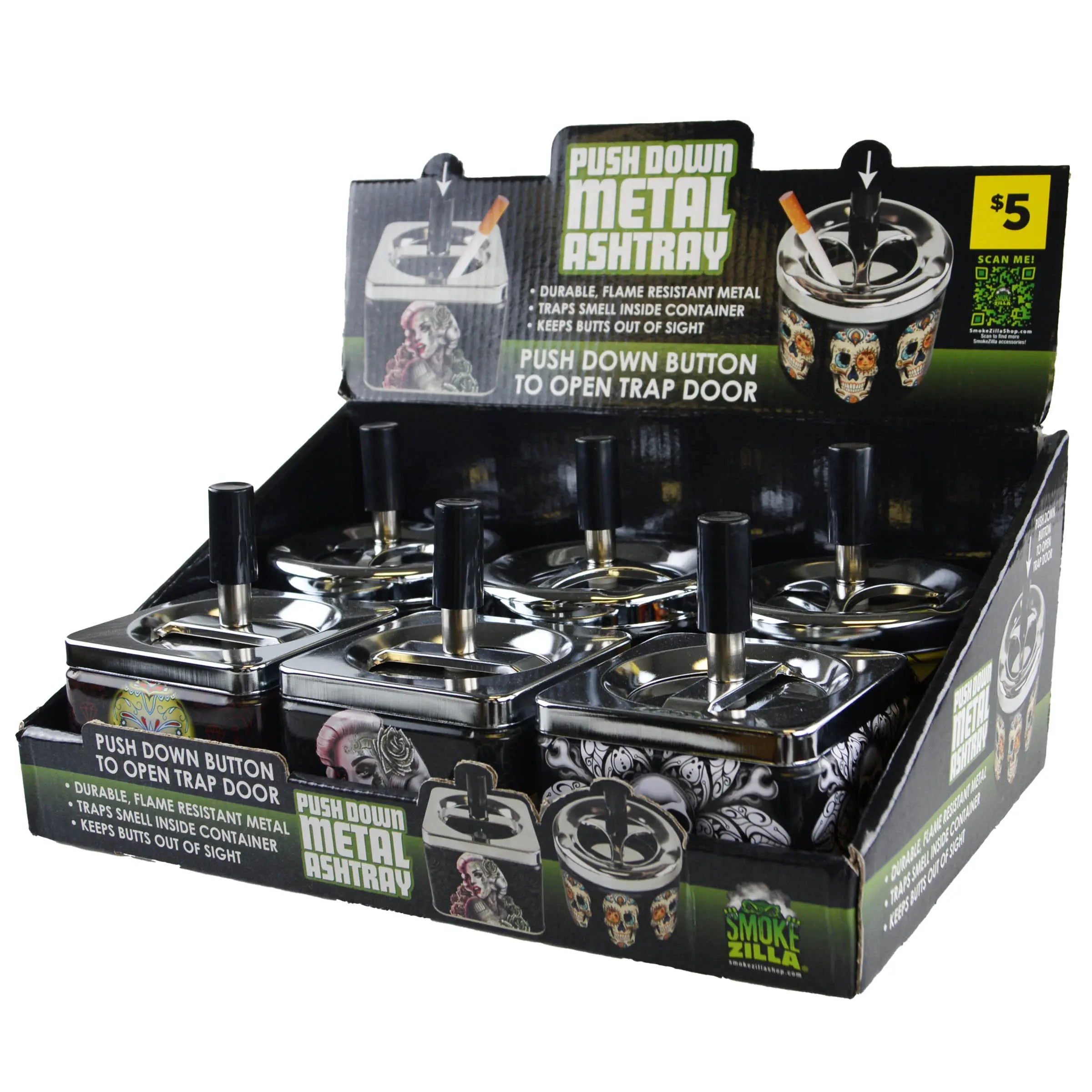 Push Down Metal Ashtray- 6 Per Retail Ready Wholesale Display 41420