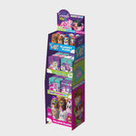 Printed Blanket floor display showcases various themed plush blankets. Holds thirty-two plush pillows and blankets with patterns to express your playful side.