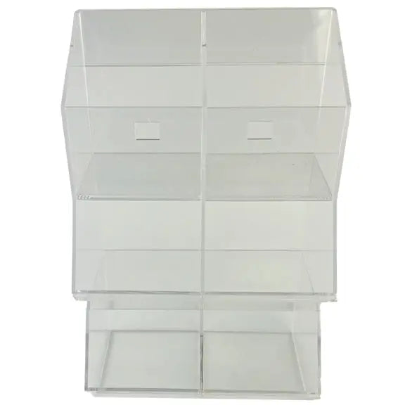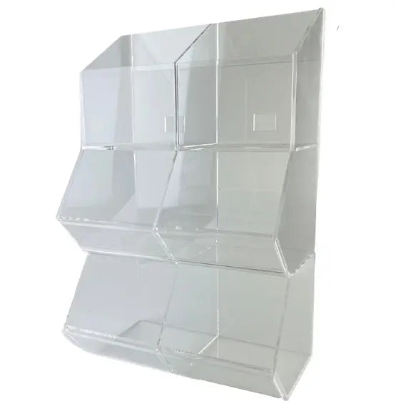 Six Bin Bulk Acrylic displays a variety of products. Features signage slots.