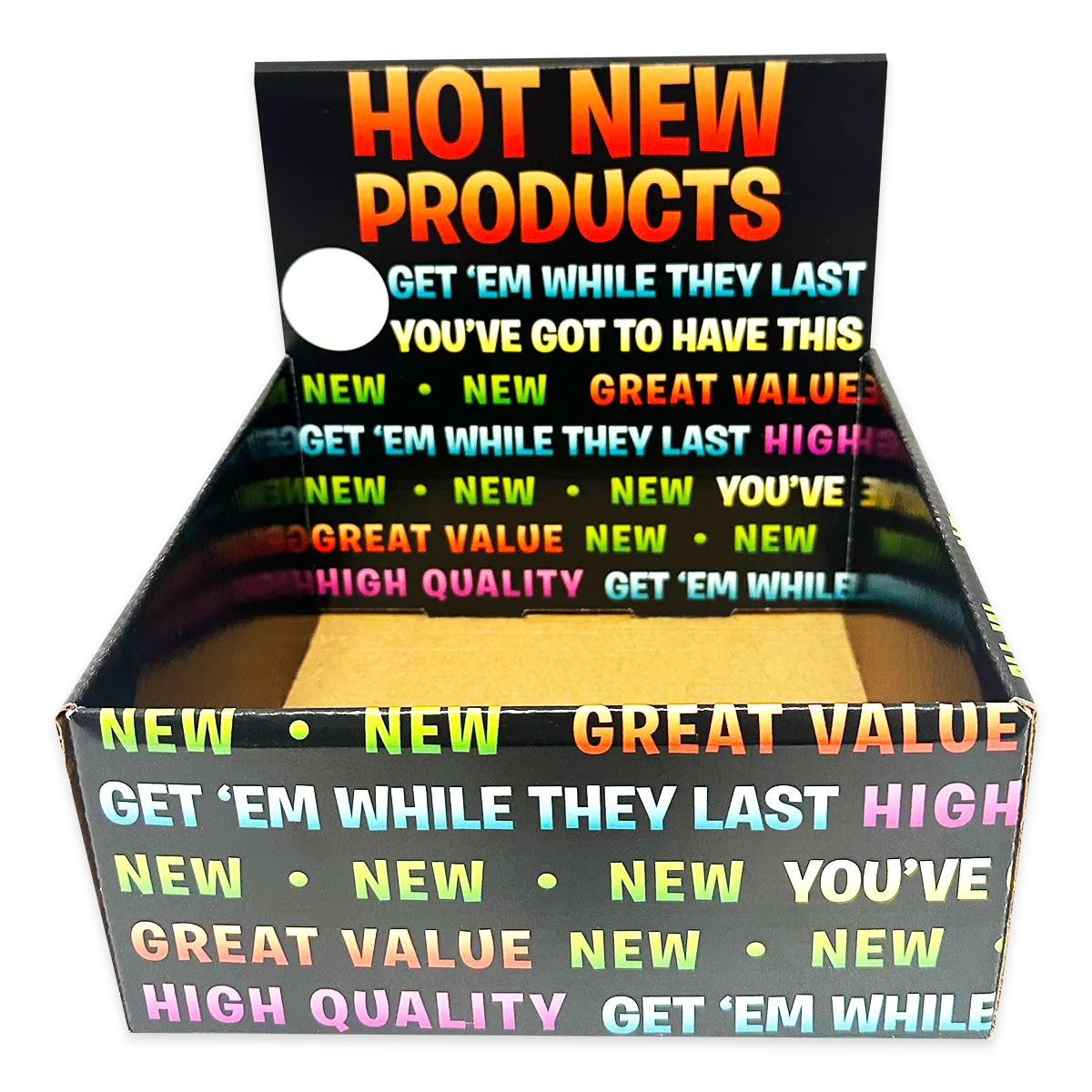 You can also get creative and sell loose goods in this box to merchandise them, to consolidate inventory from floor displays or as a fix for display boxes that get damaged or misplaced.