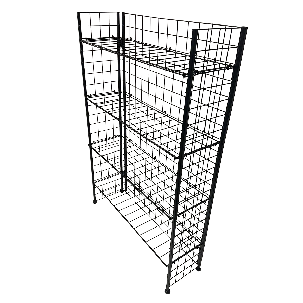 This shelving rack is specifically designed for retail merchandising. Helps maximize product display and storage space.