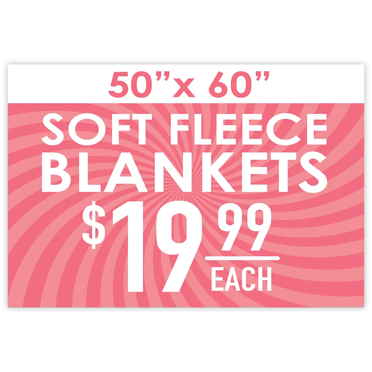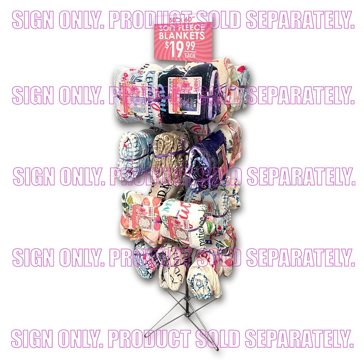 This Blanket Spinner Merchandising Header is two-sided and perfect advertising for selling product! Fits perfectly in our Wire Spinner Rack – sold separately.