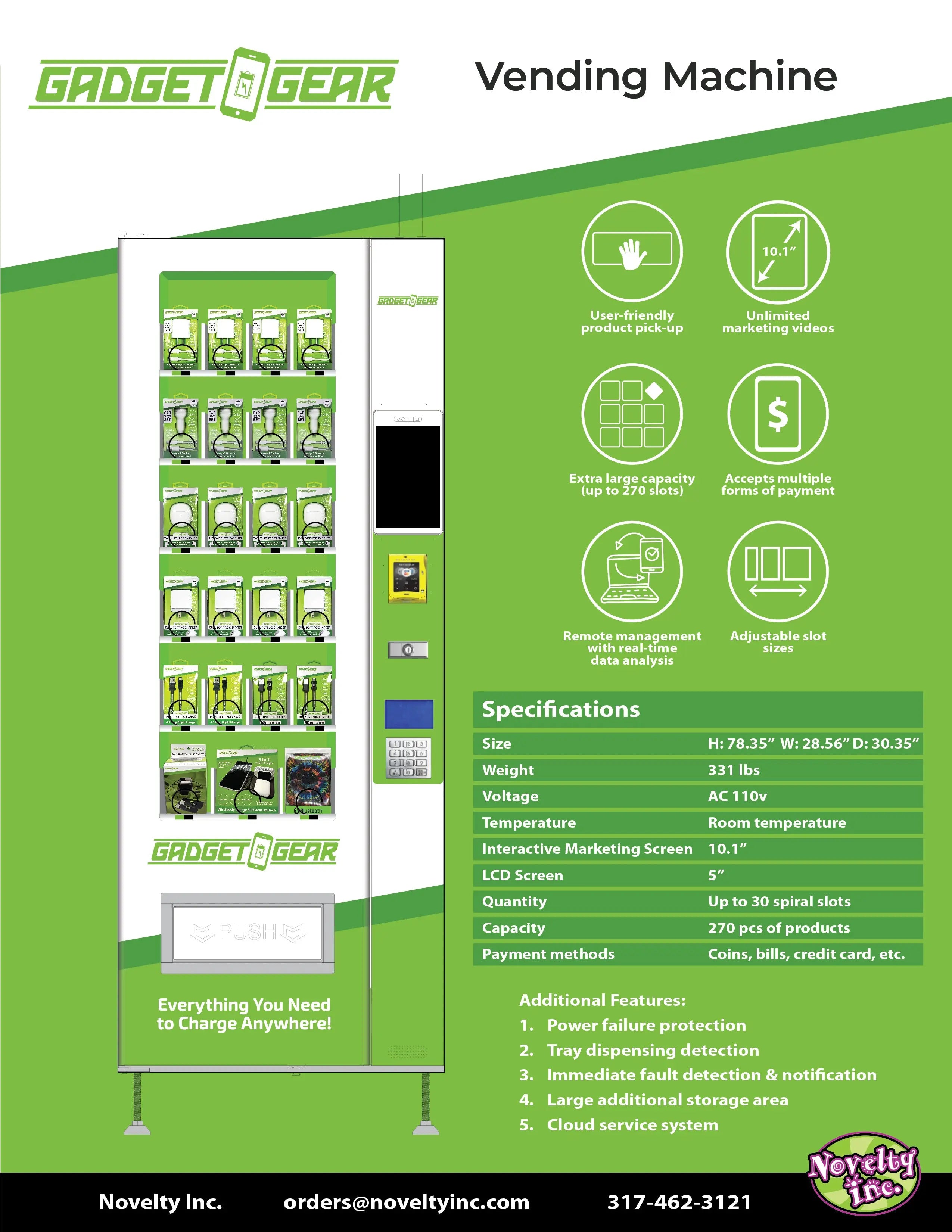 Our Gadget Gear Tech Vending Machine is the ultimate solution for selling your products. With up to 270 slots, remote management, and a 10.1" interactive marketing screen, you can reach more customers and increase sales. Its power failure protection, fault detection, and cloud service system ensure a seamless experience.