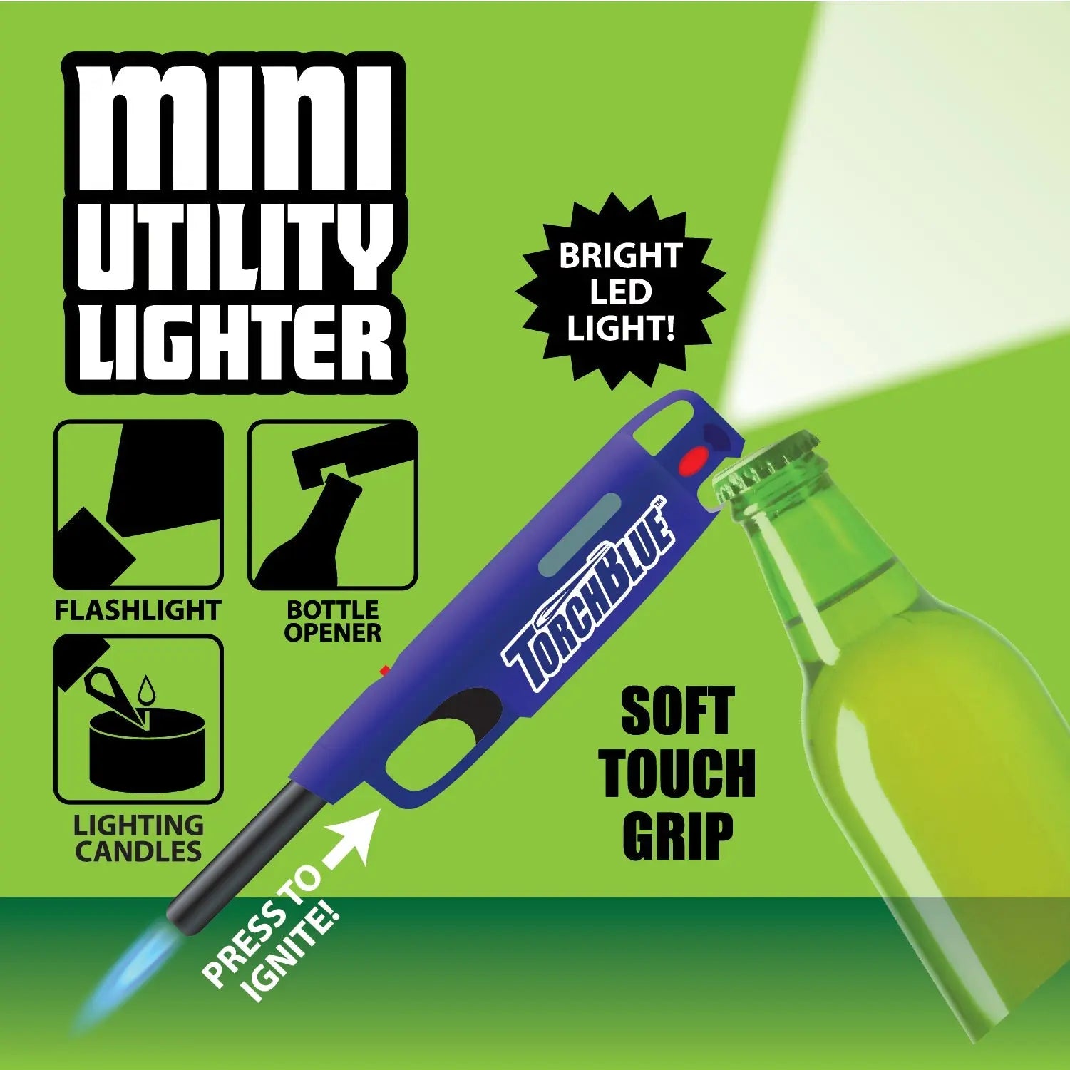 Windproof Utility torch lighter perfect for camping, candles, grilling and more. Comes in assorted designs.