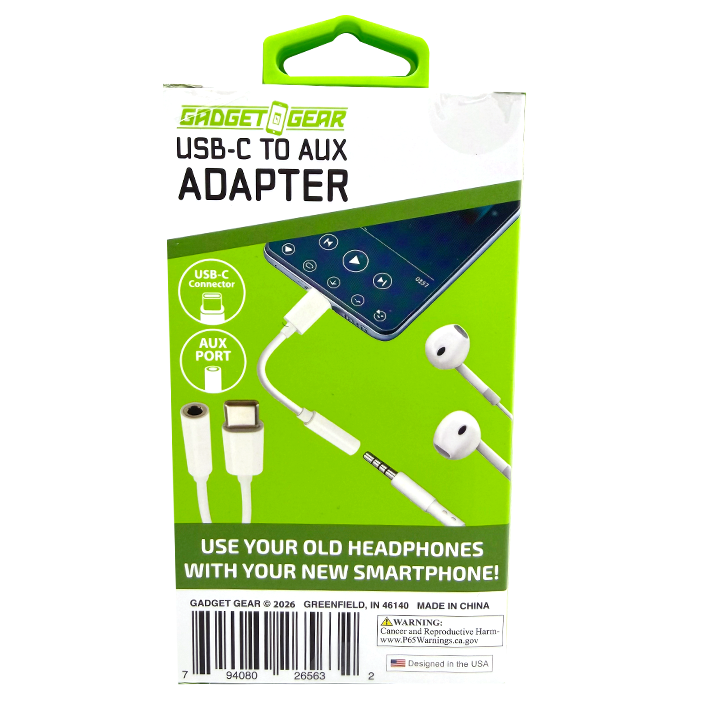 Audio Adapter Auxiliary to USB-C Converter — 6 Pieces Per Pack Connect legacy audio devices to modern USB-C smartphones and tablets. This practical converter bridges the gap between 3.5mm auxiliary cables and contemporary device ports, making it essential for retailers stocking audio accessories. Bulk pack of 6 units ideal for wholesale distribution. Durable construction supports reliable daily use across retail and consumer applications.